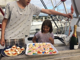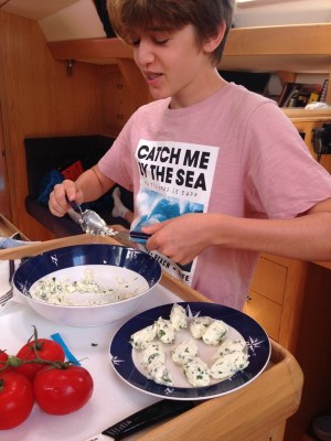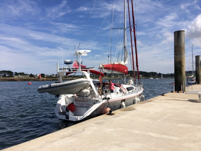 The marina has LOADS of room so for most, even sideways crabbing centreboarders with no bowthruster like Khujada 2, berthing is a breeze – certainly compared to all the Northern French ports we’ve visited – albeit not for the Gib’Sea who managed to wind up most of the locals – and us to be fair – to some degree as he bashed his way into various berths – three in total after first heading into a local’s berth, then the one next to us and finally the one he was directed to after he finally contacted the harbour master. Once we’d helped him berth safely (as safely as we could make it, at least), a local skipper took him firmly by his shoulders and told him to go and seek lessons.