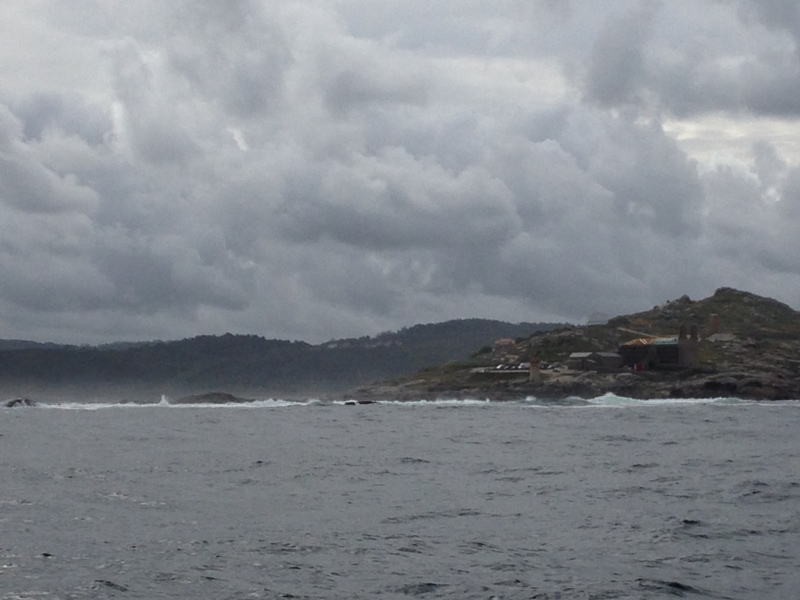 An hour later all three buckets had been used, with a short 2+ metre swell on the nose then abeam as four days’ worth of westerlies / south-westerlies piled into the shallows of the ria entrance. Poor children. The general mood of sickness or guilt (children / parents respectively) brightened when we saw our first pilot whale abeam as we motored down towards Finisterre.