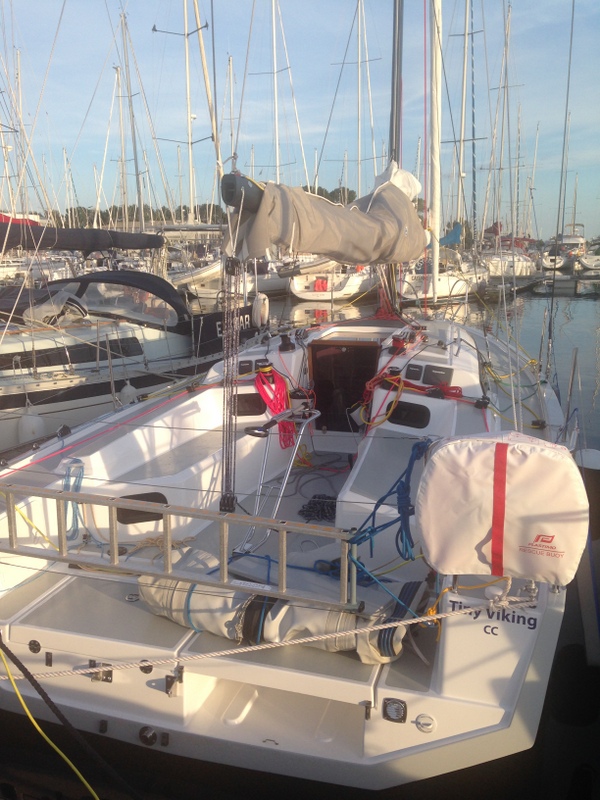 We reached past Francois Gabart’s Vendee Globe winner (current title and record holder) as we started out across Biscay from Brittany, after mooring just along from his toy in Port-la-Forêt, a rapid-looking RM.