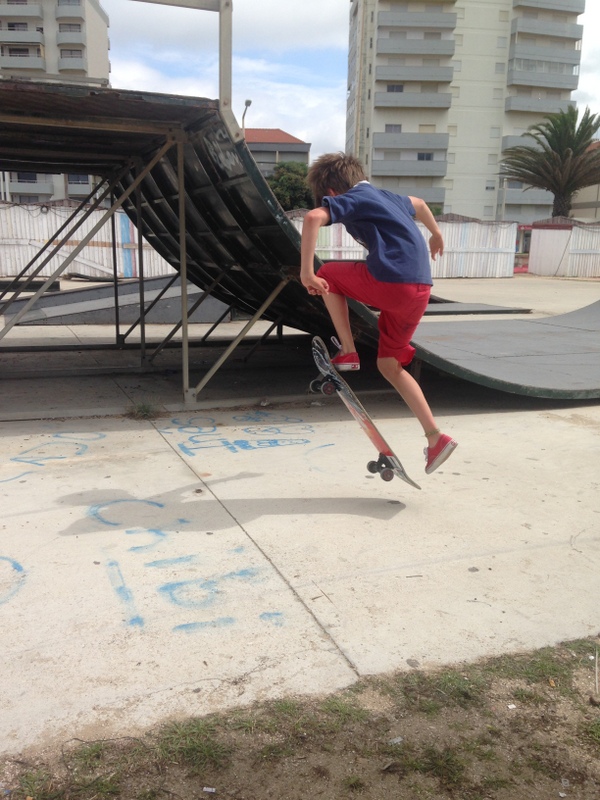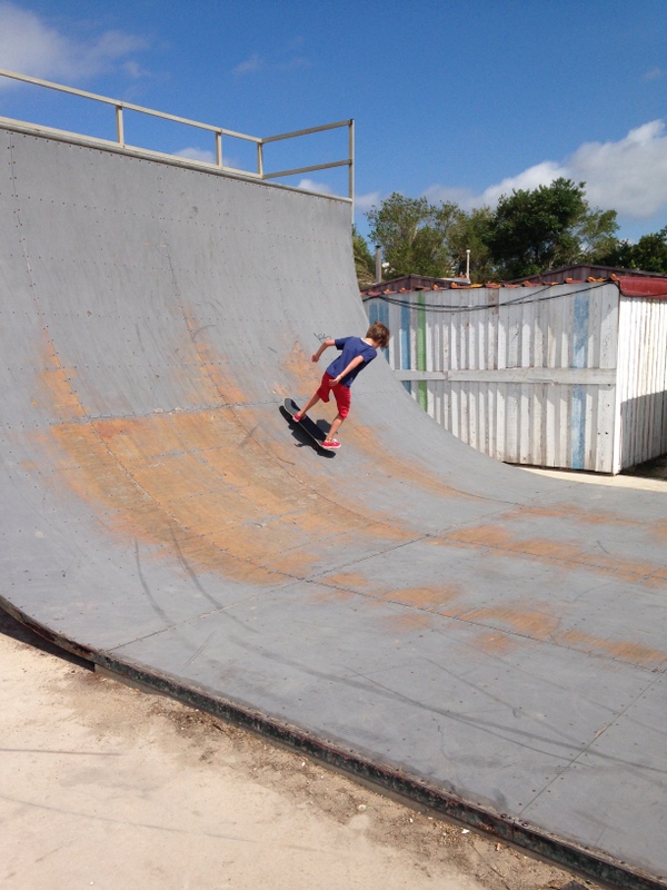 Skateboarding, humongous beach, decent park with playground, good local market / decent supermarkets and even learning some German. We can only wish the marina WiFi was less ropey.