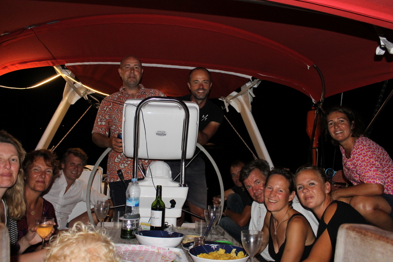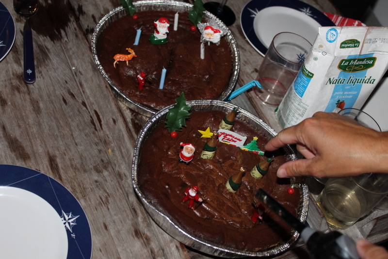 We’re no strangers to having lots of people round. At home Albane can rarely resist inviting 12 or more for what started out as a small dinner party, and is never flustered by the prospect of catering for large numbers. This was something else. We wanted to host a birthday party for one of our friends. Chili, Delphia, Take Off, Aretha, Matilda and Khujada 2. 6 boats. 12 adults. 16 children. 28 people on board to celebrate – double the maximum permitted by the manufacturer. Champagne, cava, wine and beer (even some water) accompanied confit de canard, rice and fondant de chocolat. It all went wonderfully. Tomorrow we’re expecting still more for our New Year’s Eve celebration on the beach here in Chatham Bay on Union Island. Happy New Year everyone!