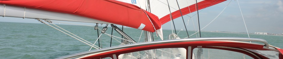 We left Boulogne in a fleet of dozens of yachts, perhaps fifty in total, all heading east in more clement but still breezy conditions, broad reaching round le Cap Gris-Nez in calm seas in sight of both coasts – French & British – and then dead downwind past Calais and up the last stretch of northern French coast. Whilst some, including Lady Marron, our new Allures friends, hived off into Dunkerque, we carried on first goose-winging then with poled out genoa with the others up through the very busy Dunkerque channel into Belgium.