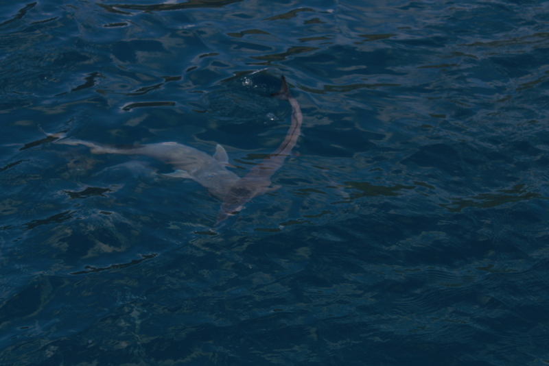Gentle force three conditions plus no swell equals parasailor conditions. Once breakfasted we soon had our downwind sail up just as the current turned against us, squeezing out a pleasing 4½ knots SOG (6 knots through the water) in 10-12 knots of wind. That we were still able to sail (and not need the engine) was pleasing enough, and then just as we passed la bouee de cussy baie (W) we were joined by an escort of dolphins who hung around for ages – they had to slow their pace somewhat to stay with us.